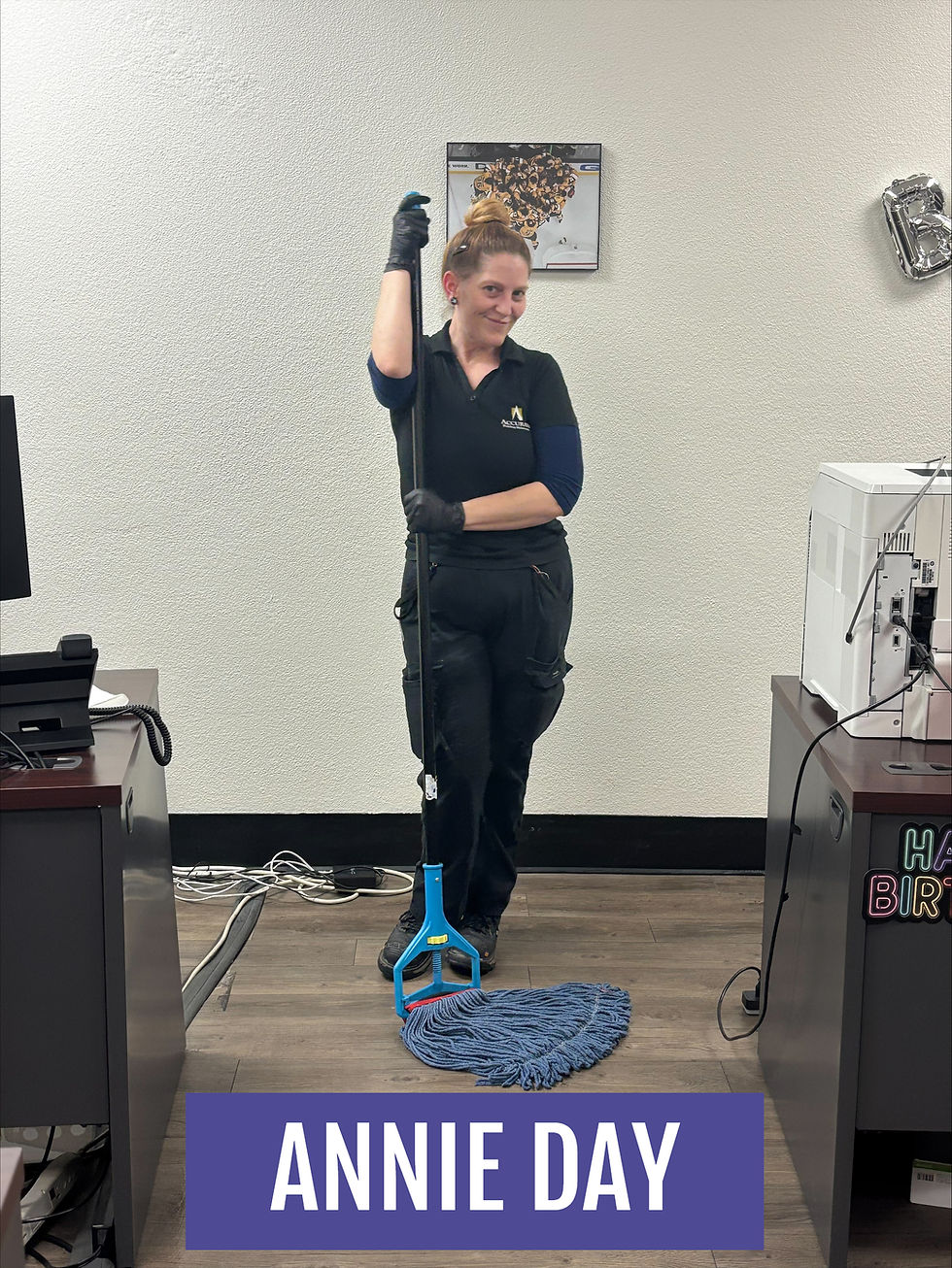 "Annie is known for her bubbly personality and her ability to speak her mind, which usually means she’s already noticed something that needs attention before anyone else has. One of her most outstanding qualities is her attention to detail. She is meticulous in her work and consistently goes above and beyond, ensuring that every nook, cranny, and often-overlooked spot is thoroughly addressed. If there’s a spot you didn’t even know existed, chances are Annie has already cleaned it." -Lily Guardado, Accurate PM Area Supervisor, Las Vegas